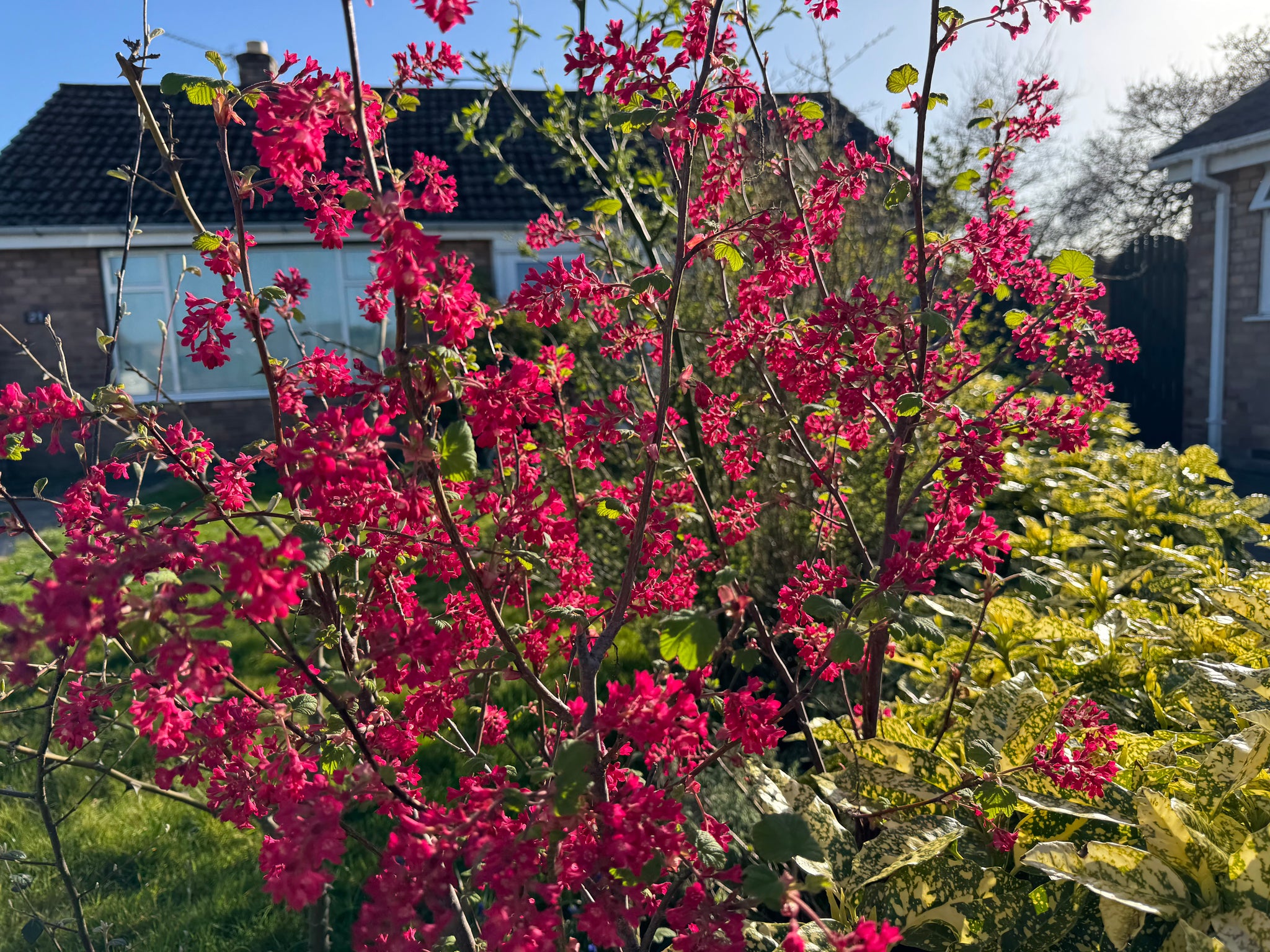 Ribes sanguineum 'Koja' is a fast growing shrub but its height remains relatively low at 1.5-2m. It can be pruned and will still flower freely if grown in a container.