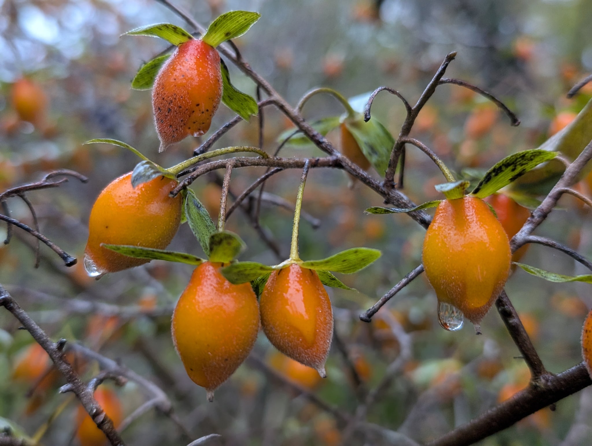 Diospyros rhombifolia, native to Southern parts of China is also extremely rare in cultivation, yet this edible Princess Persimmon will grow happily in a pot container or when planted in the garden. The shrubby like persimmon has attractive small leaves, popular as a bonsai subject. Greenish yellow flowers are followed by tasty small plum sized rounded and sometimes elongated fruits which mature from orange to a light red colour in late Autumn. Diospyros rhombifolia is mainly dioecious, therefore male and female plants are both needed to ensure a crop of fruit. Planting two together and growing it as a multistemmed looking tree would certainly enhance fruiting.